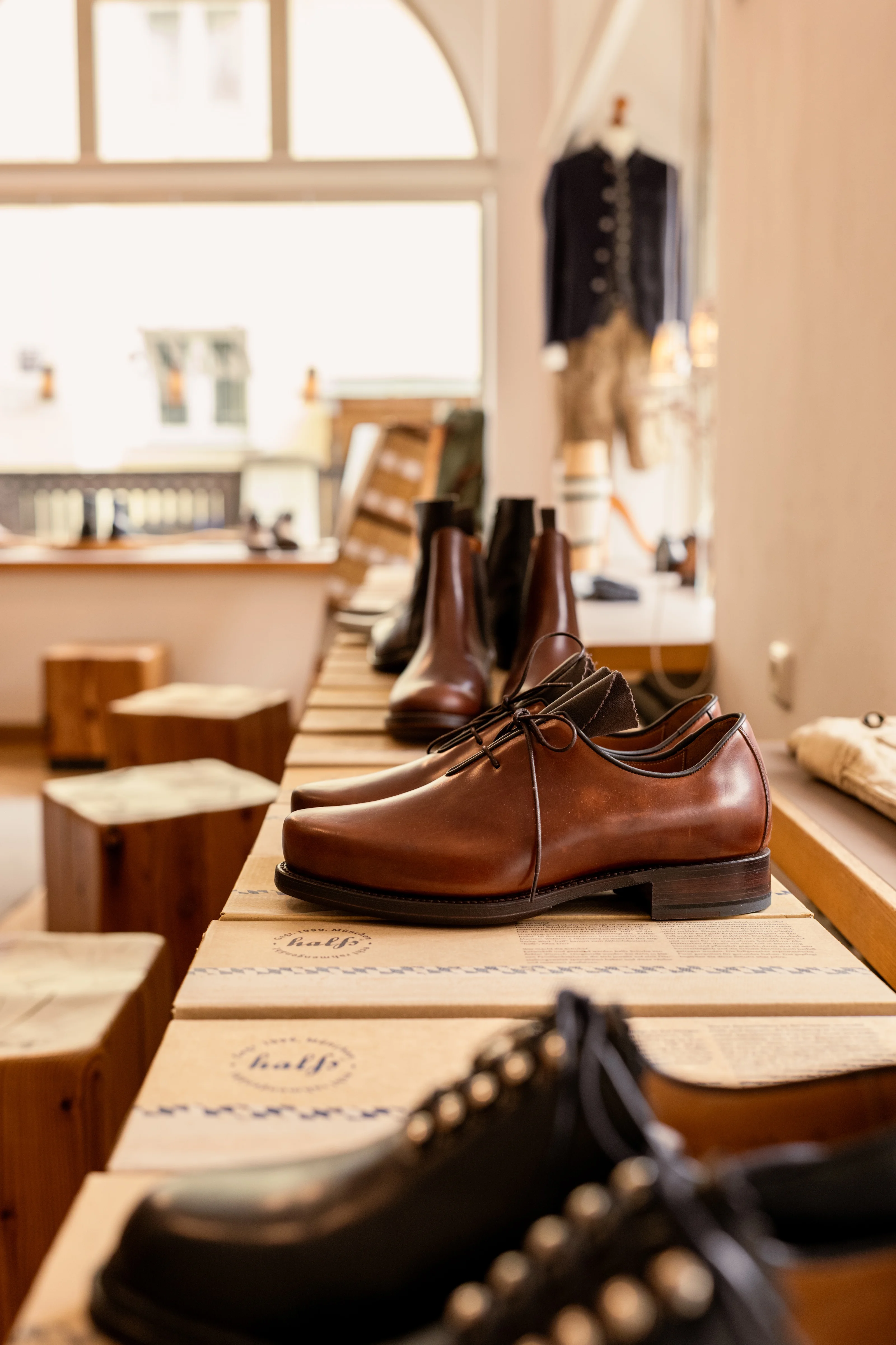 Seit 25 Jahren gibt es nun unser kleines Münchner Schuhlabel, das für Liebe zum Detail, Wertschätzung von Tradition und höchste Qualität steht. Der Name halfs, [ha:vz], ist eine Hommage an den einzigen Deutschen Schuhklassiker, den Haferlschuh. Die Herkunft der Bezeichnung Haferlschuh liegt im Dunkeln. Um die Jahrhundertwende wurde von den ersten Alpintouristen, Engländern, der Haferlschuh als “half-cut shoe” bezeichnet. Was man in Bayern damals noch Jägerschuh nannte, hiess ein paar Jahrzehnte später Haferlschuh. Ob die Engländer dafür verantwortlich waren, können wir heute nicht mehr beantworten. In seiner ursprünglichen Funktion diente der Haferlschuh als leichter, wasserfester Kletterschuh und war vor allem für Bergbauern und Jäger konzipiert und entwickelt worden. Mit den Jahren wurde er auch von Trachtlern und Schützen getragen und hat sich als festen Bestandteil der bayrischen Tracht manifestiert. Für uns ist der moderne Haferlschuh nicht nur ein wichtiges Detail bayerischer Tracht, sondern darüber hinaus ein langjähriger Alltagsbegleiter oder ein Schuh für den besonderen Anlass.
